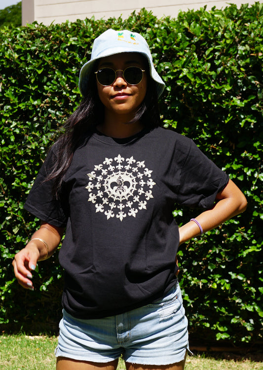 Black and Gold Fleur De Lis Mandala T-Shirt