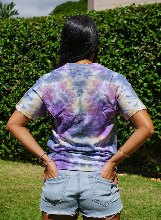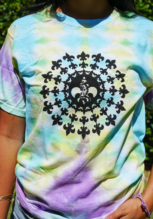 Blue/Yellow/Purple Tie Dye Fleur De Lis Mandala T-Shirt