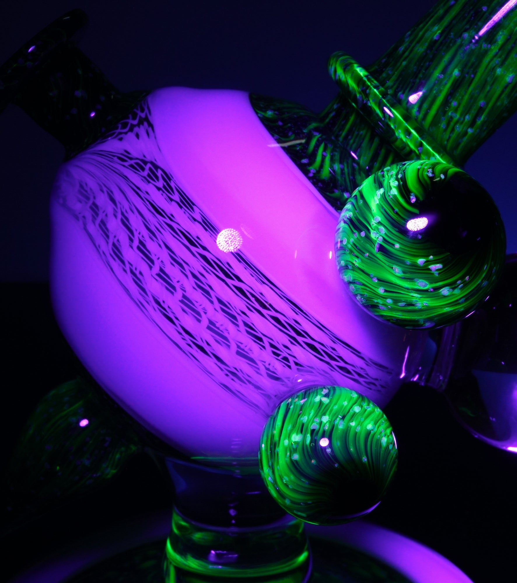 - This collaboration heliosphere is made with Secret White and uv-reactive crushed opal.