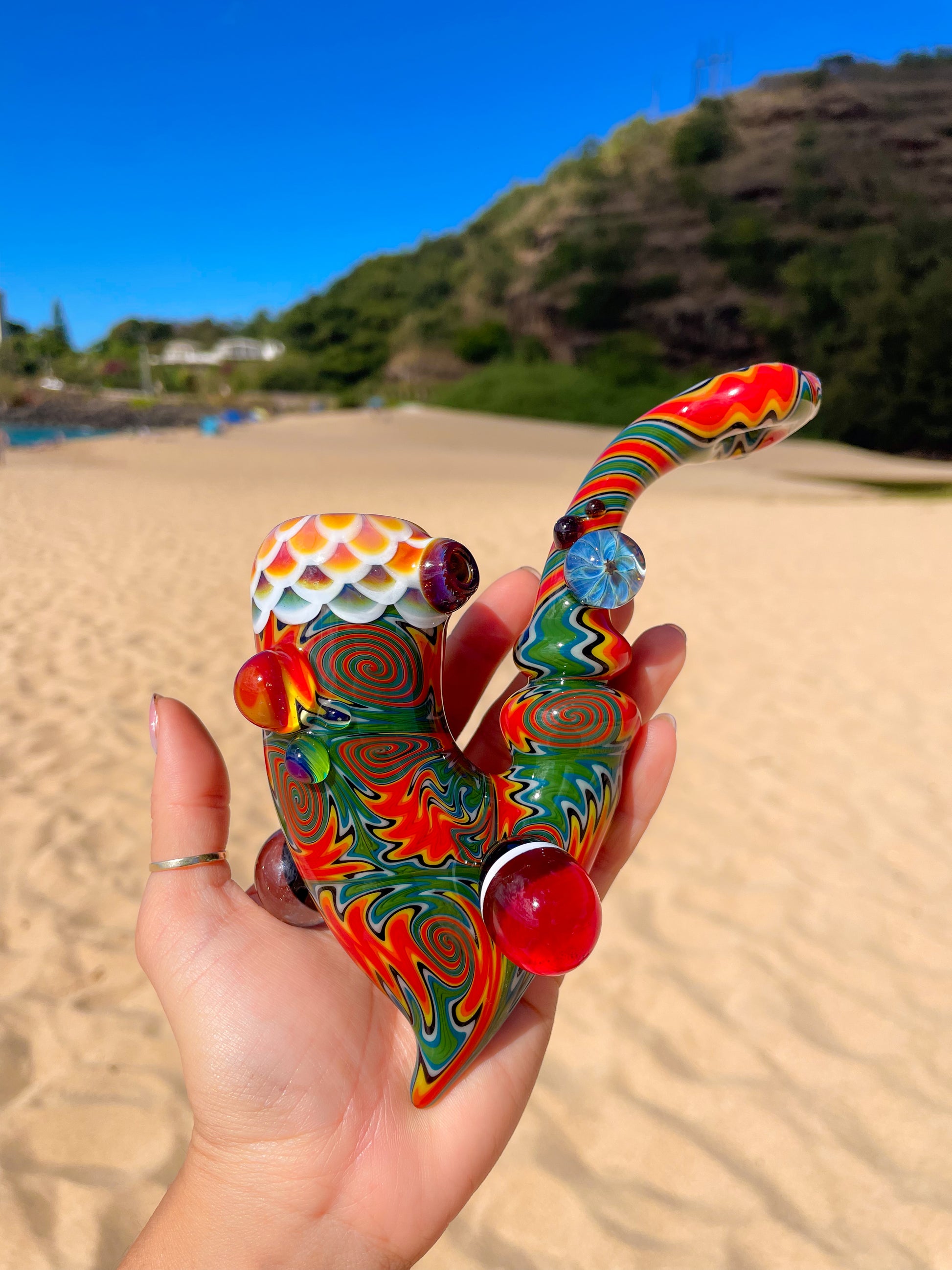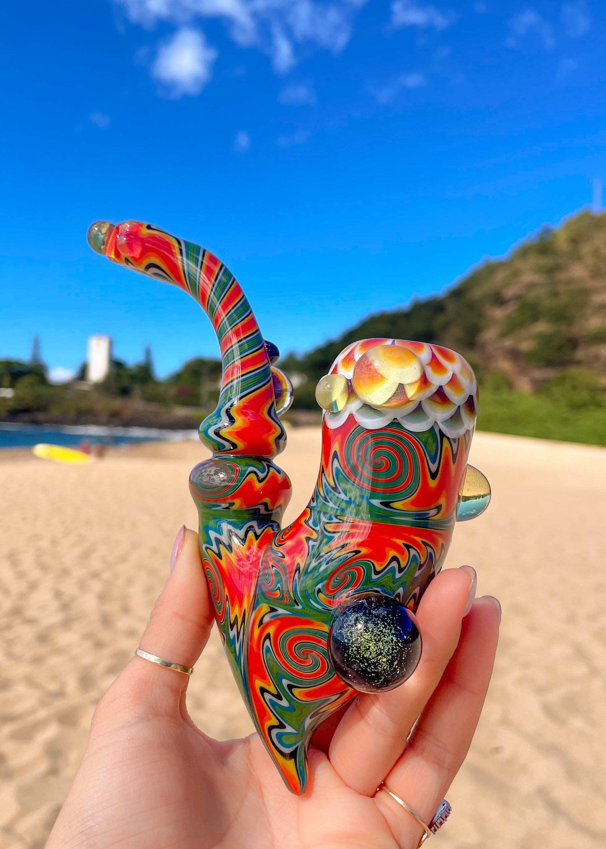 Beautiful ocarina style sherlock. This piece is completely decked out in multiple wigwag sections, linework and dot stacks!