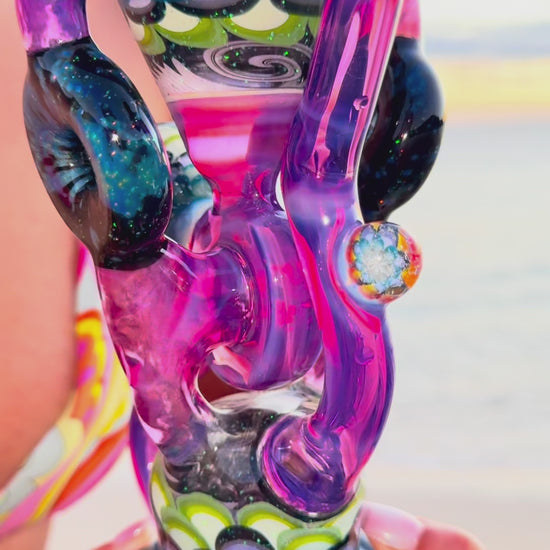 - This piece is made with Big Z's crushed opal coated silver space fume, and WYG's icy fade dot stacks coated in crushed opal. So many sections in this incredible piece!