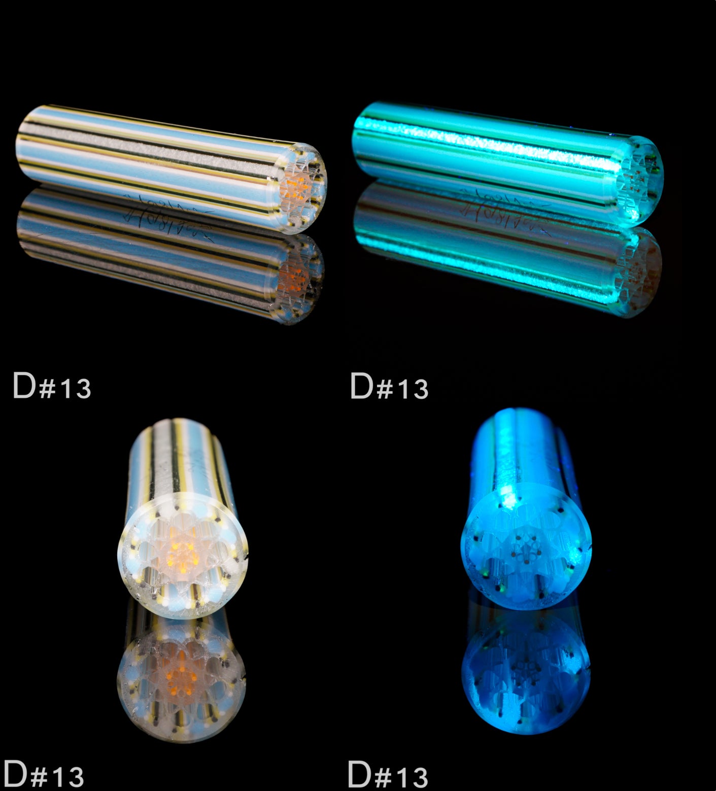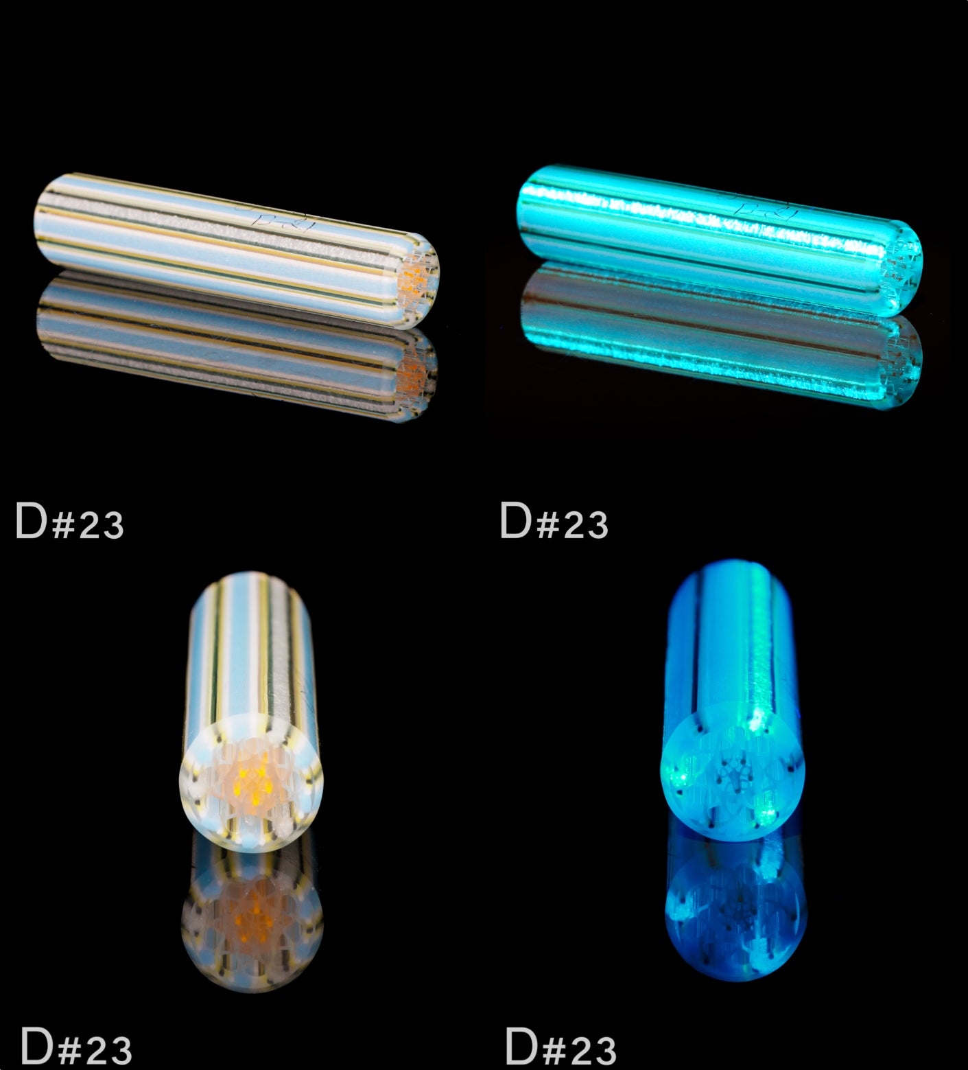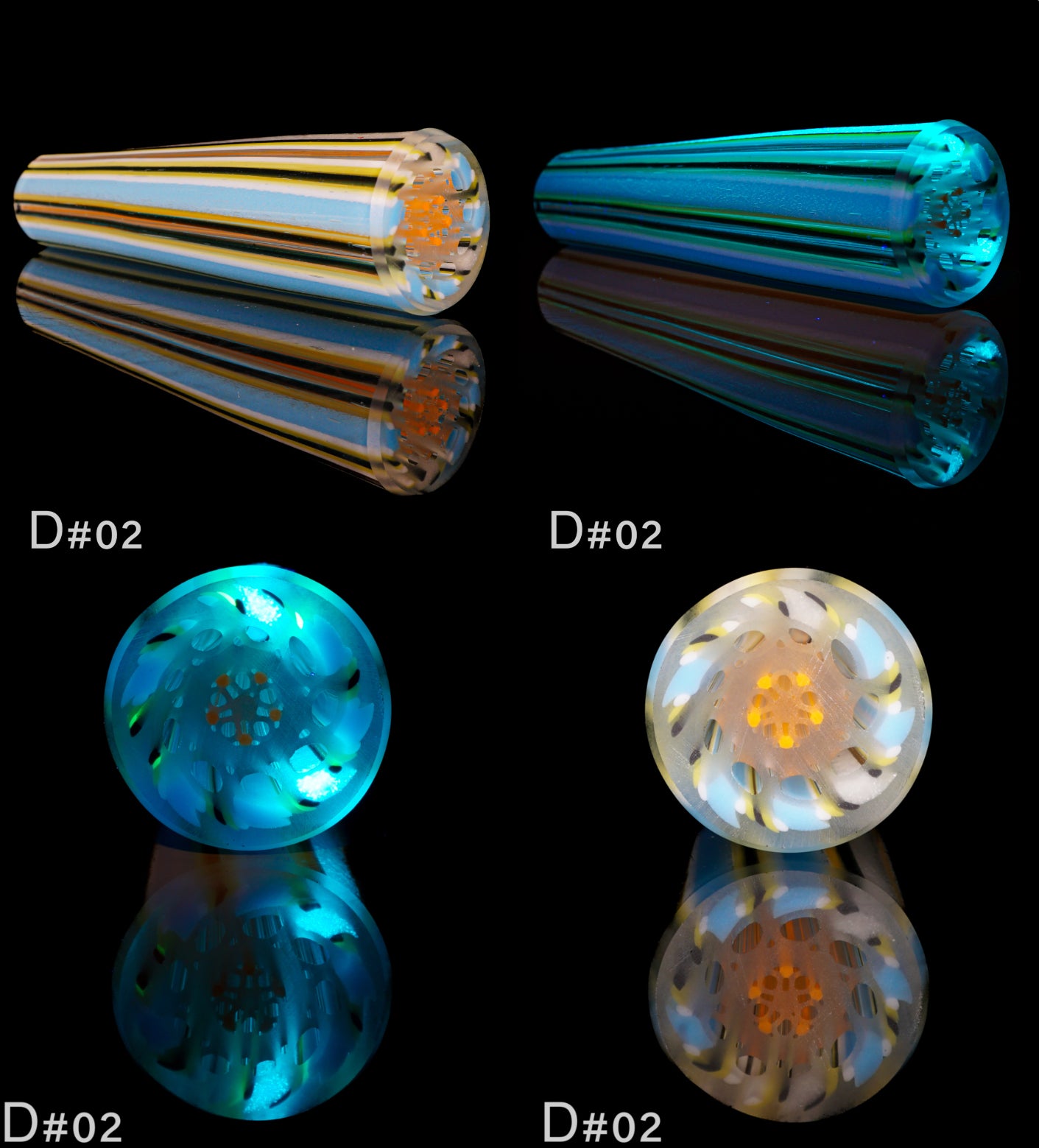 This gorgeous batch of geo tips features beautiful blue, white and black color way with an orange flower of life core.
