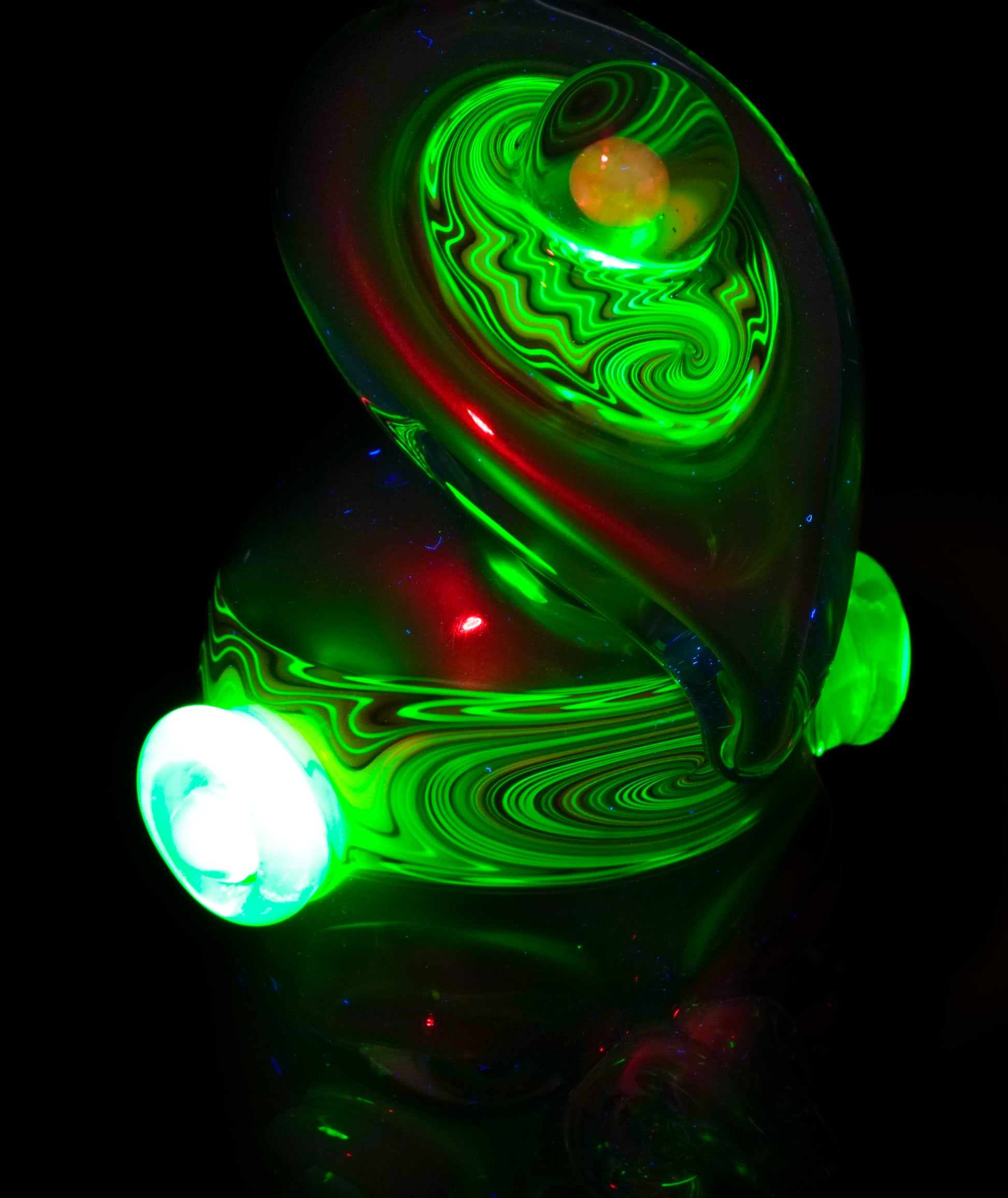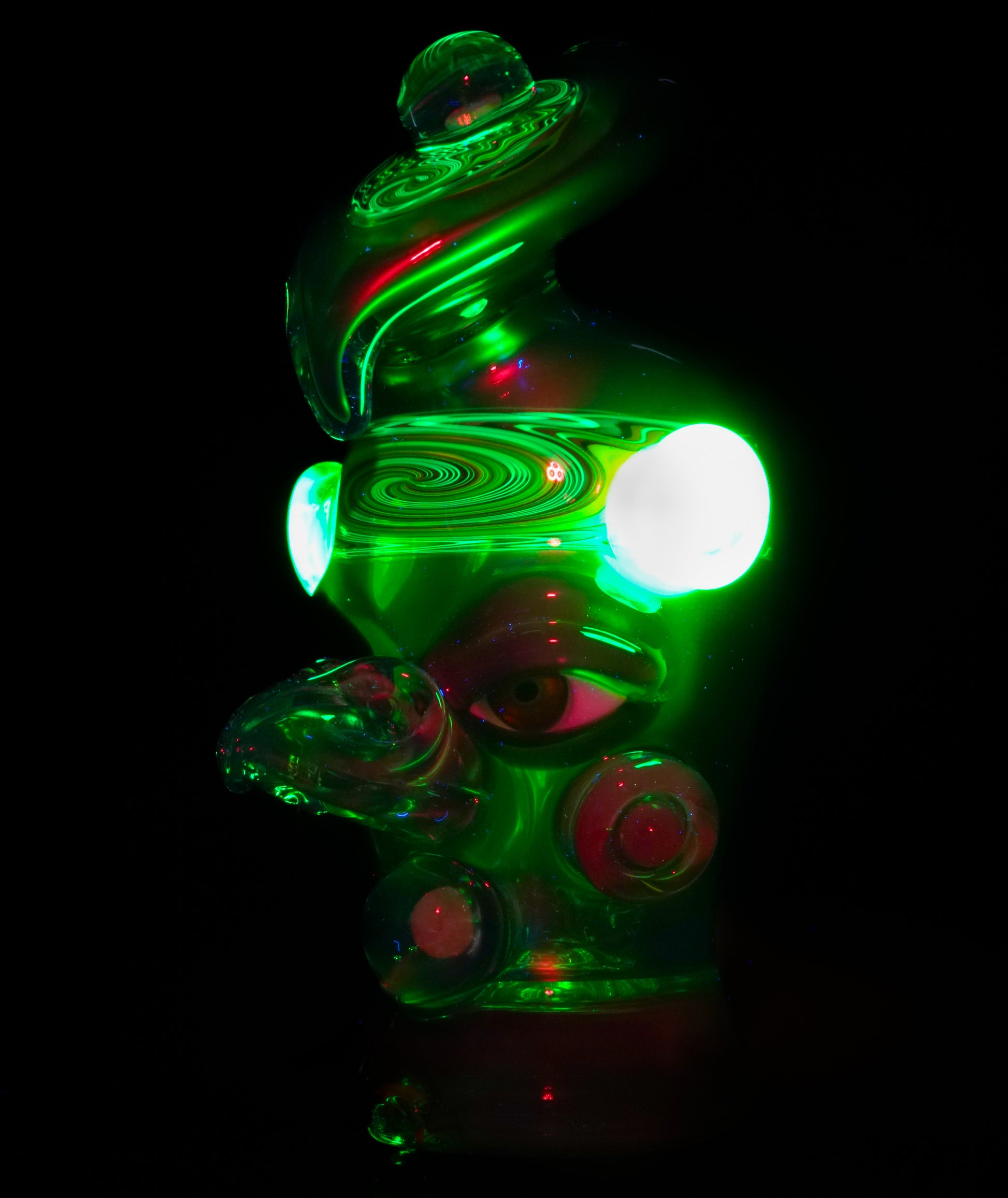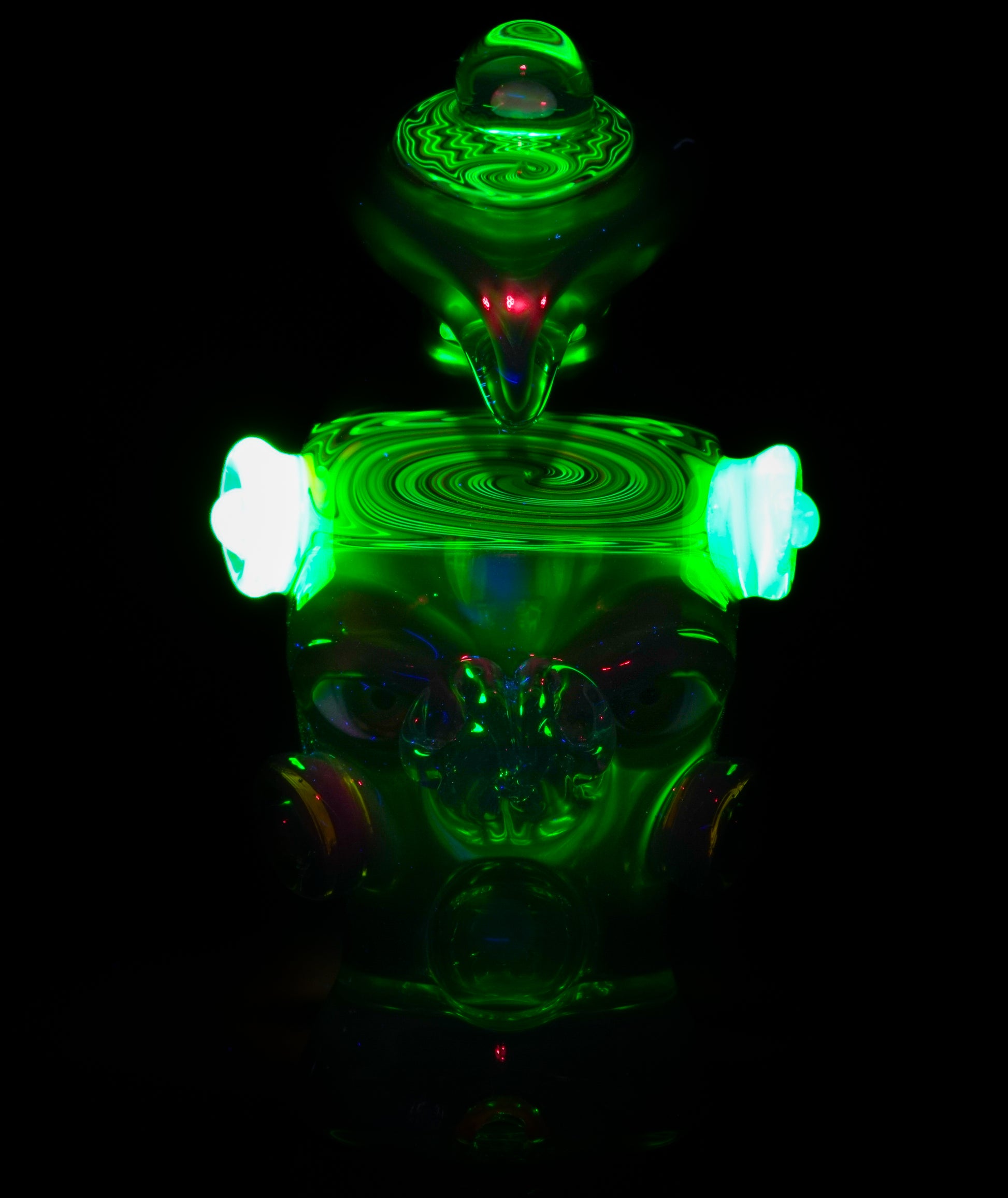 UV-reactive wigwag headband wraps the crown, third eye feather accent and cheek accents glow.