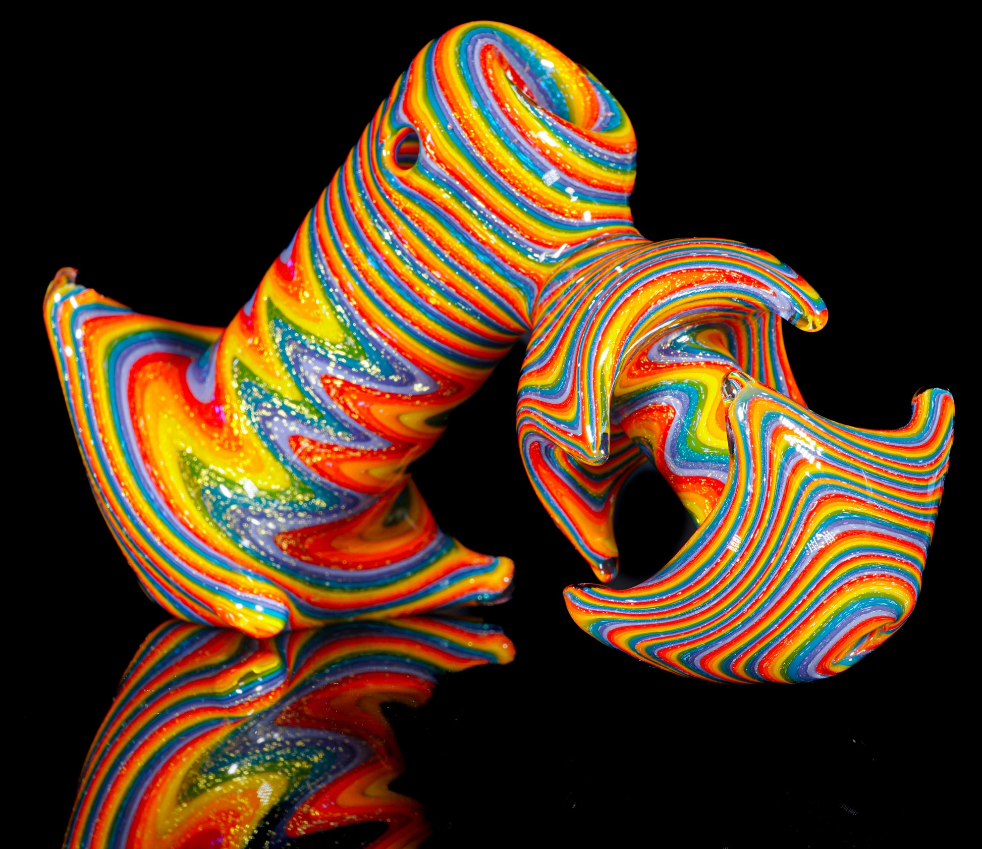 Gold Dichro Rainbow Wigwag Hammer Bubbler