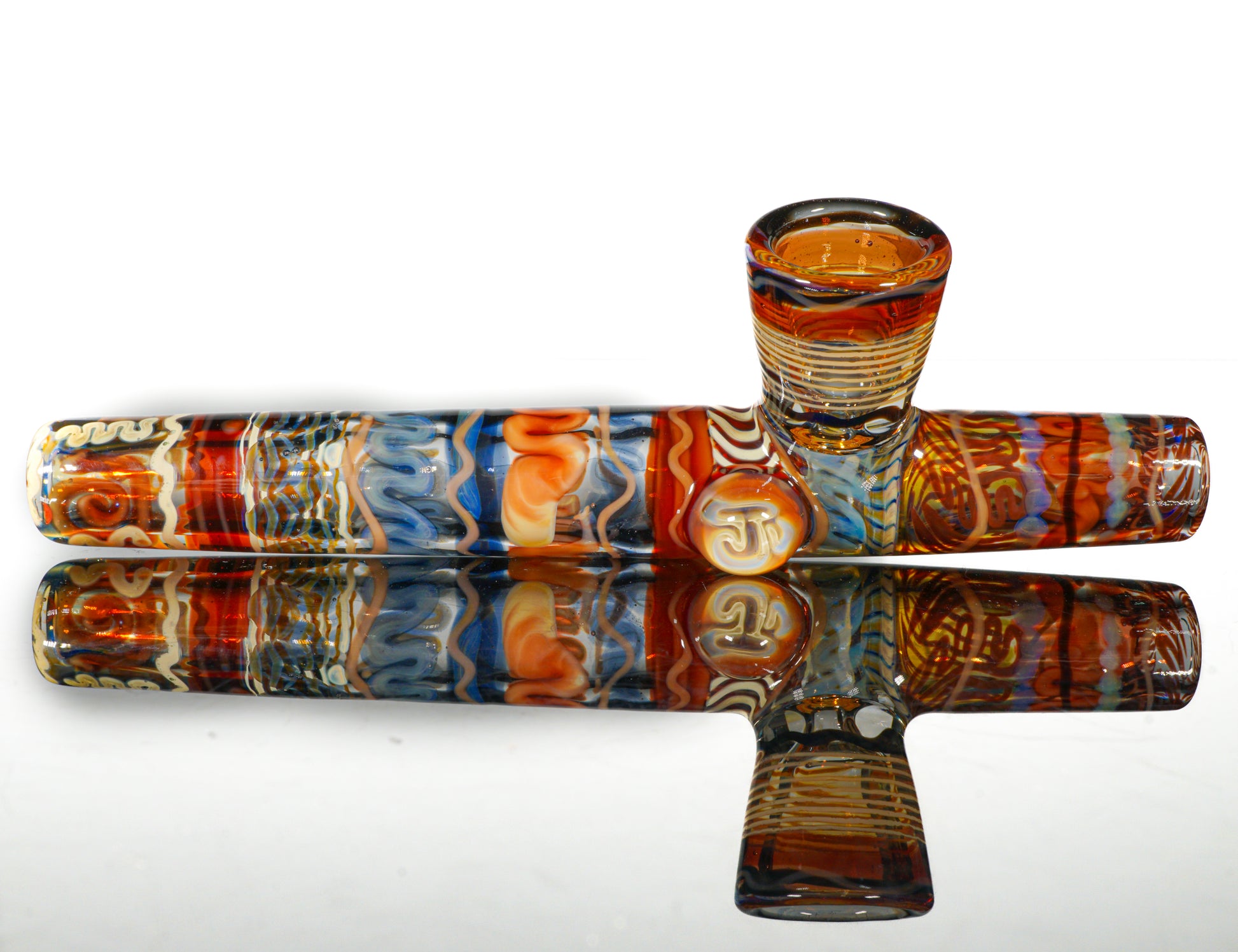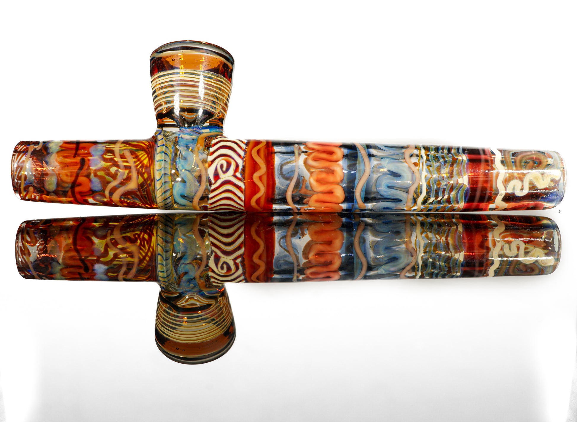 This hand-drawn pattern work “Kazoo” style dry pipe features layers of flowing, intricate accents that wrap seamlessly around the body.