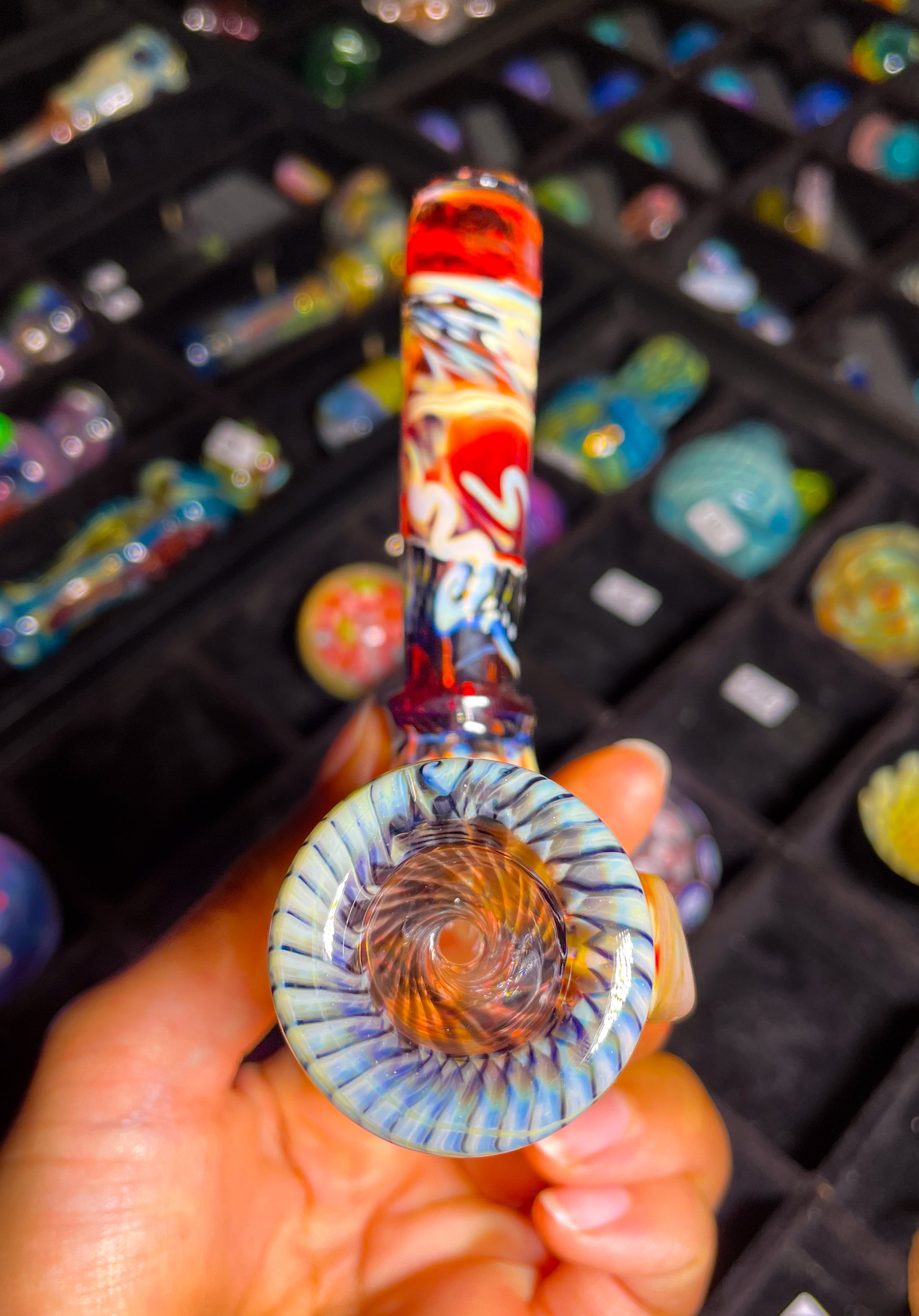 This corn cob style dry pipe is filled to the brim with hand-drawn pattern details and extra vibey smiley face accents.