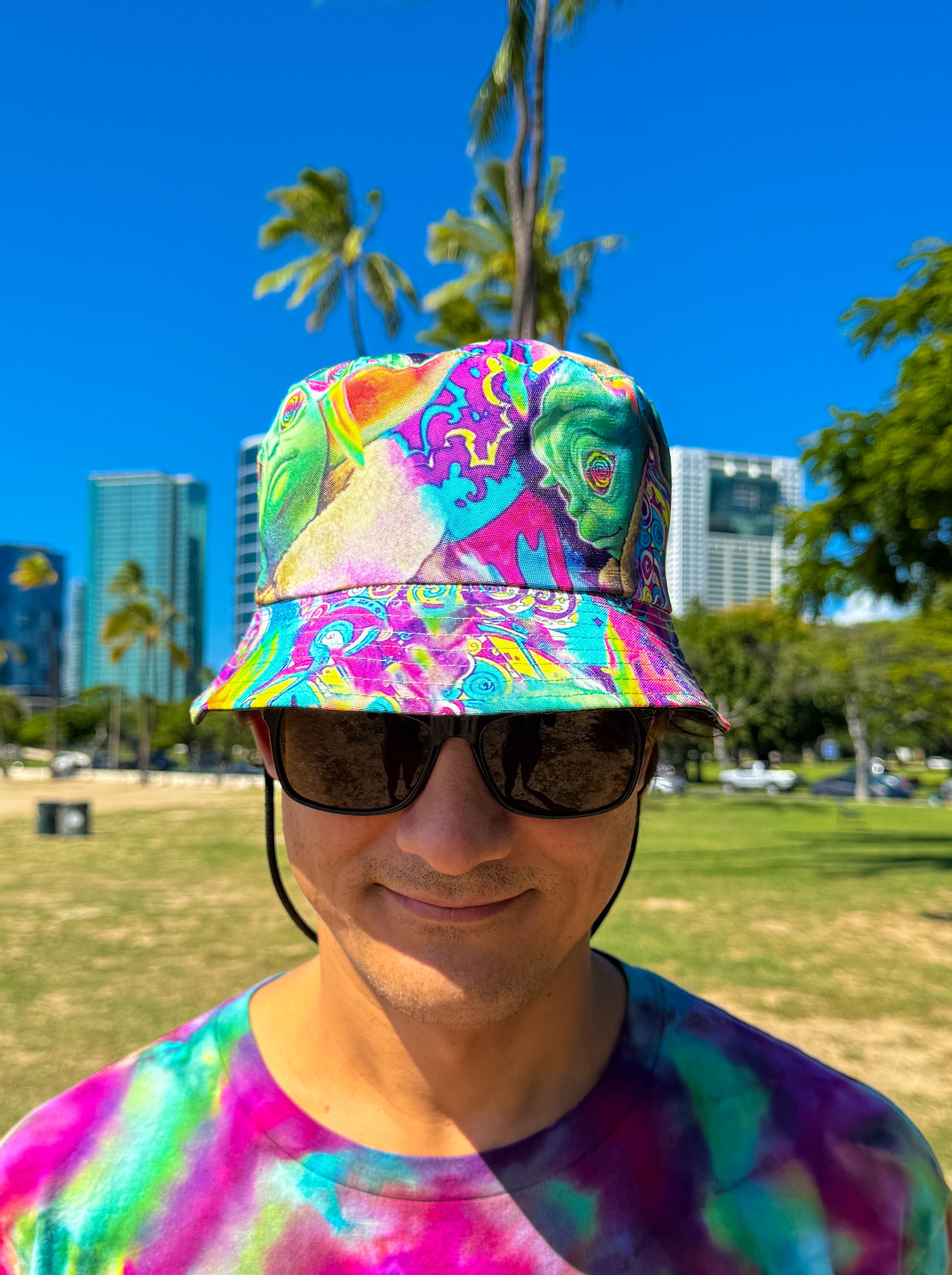 Your next favorite party hat! Psychedelic Yoda inspired bucket hat.