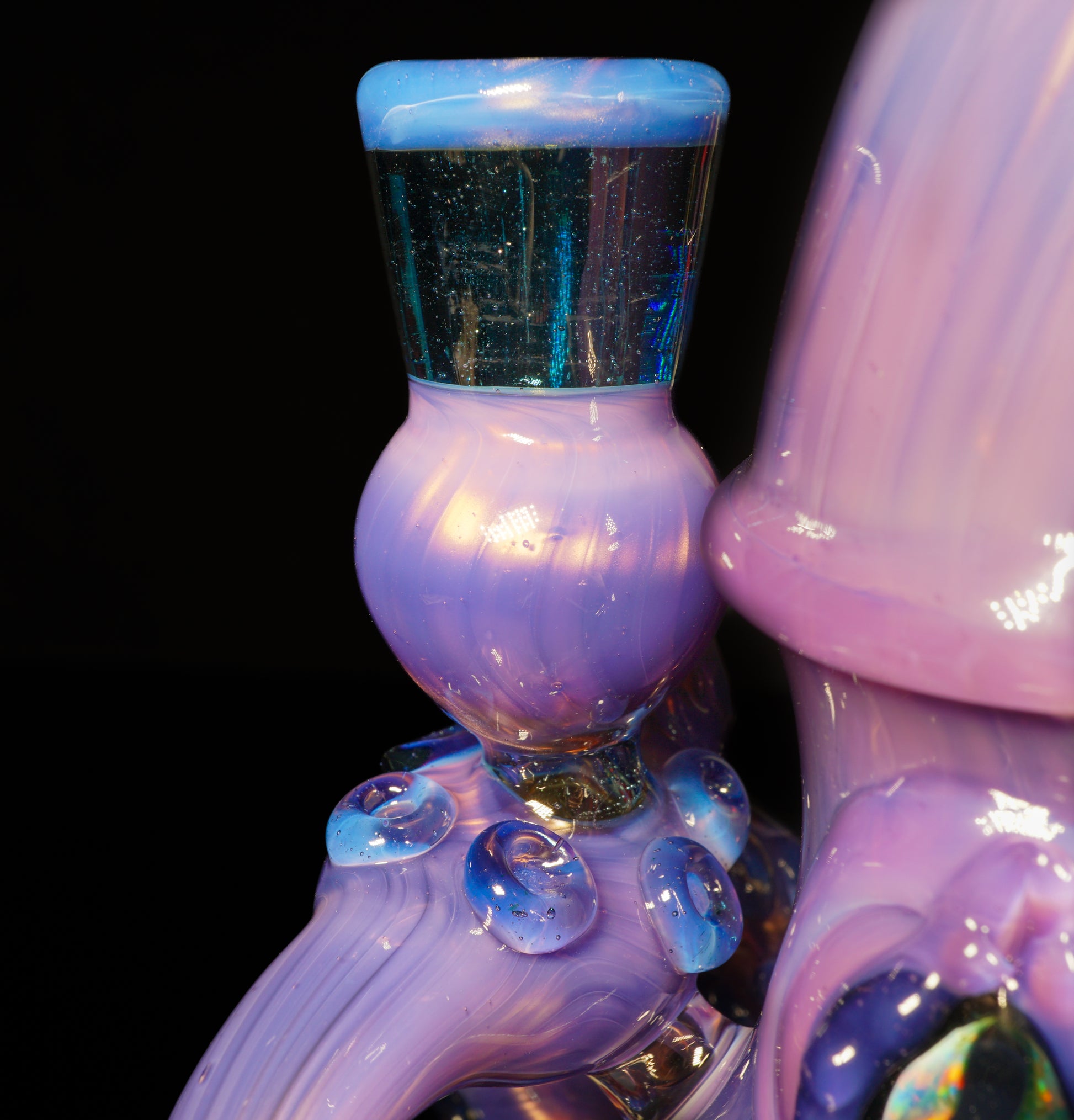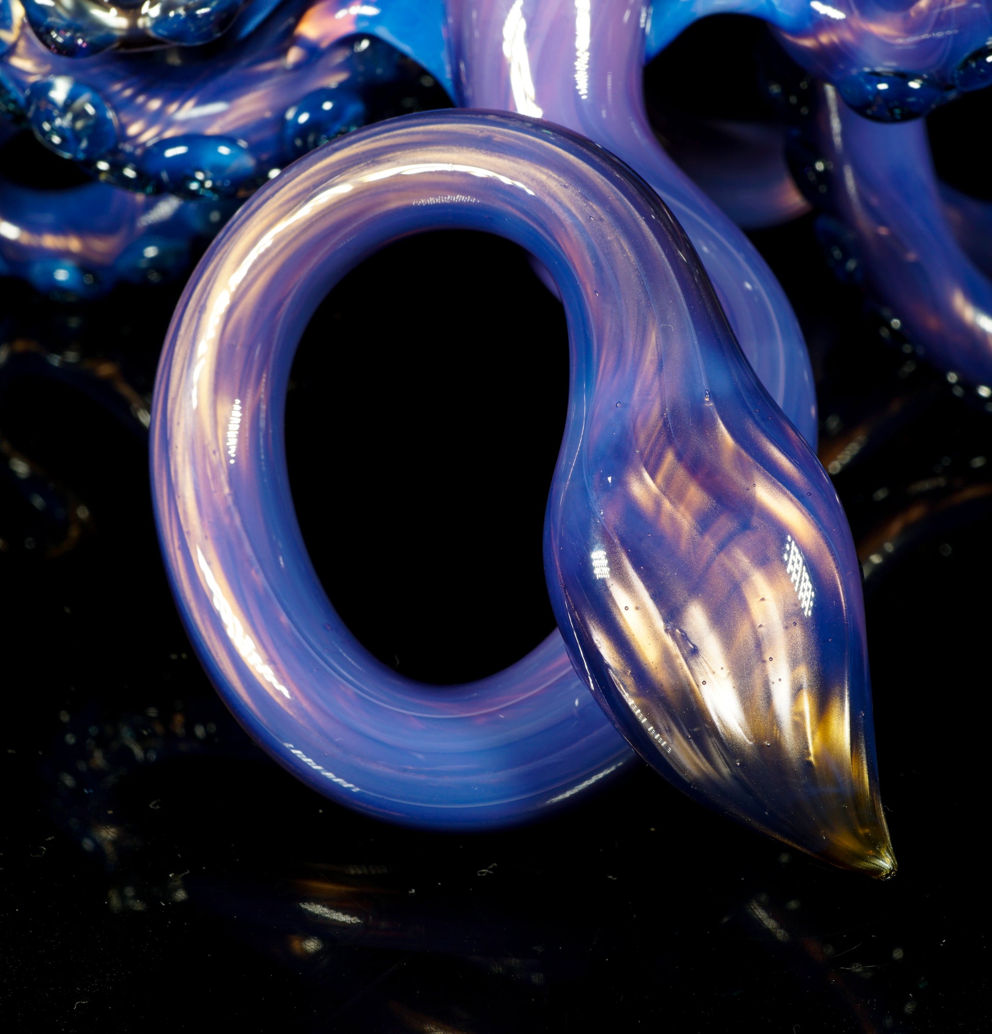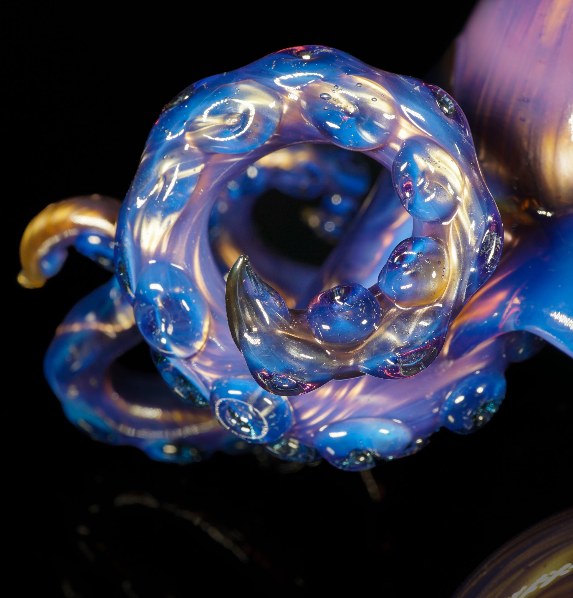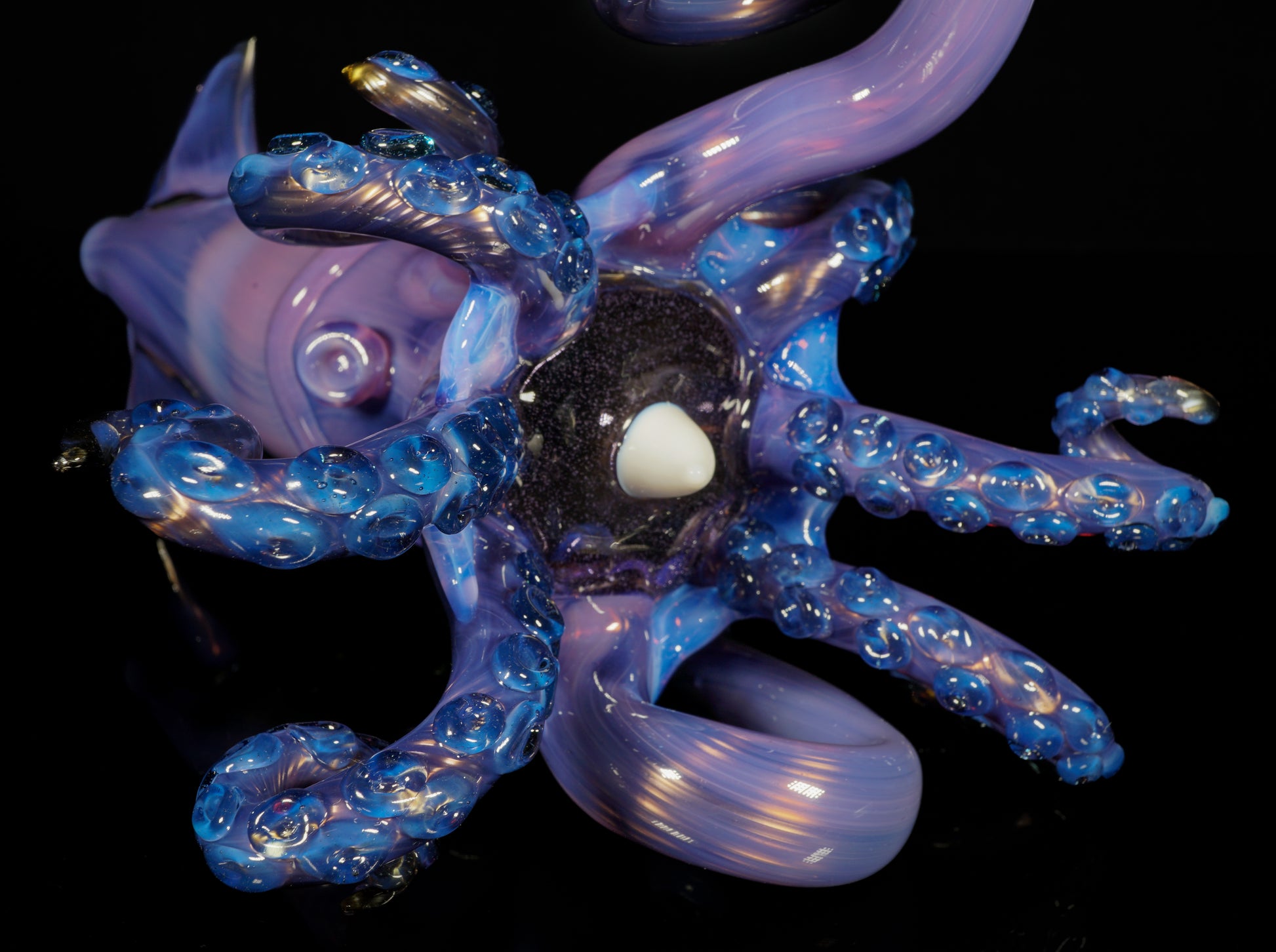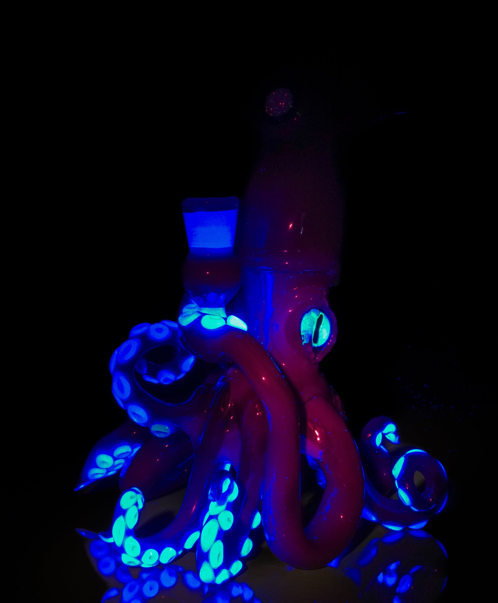 Decked out with uv-reactive Atomic Stardust accents, glowing bright ocean blue on the suction cups and eyes.